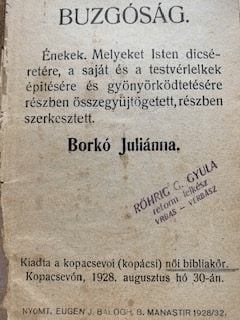 Davno u Kopačevu Julianna Borko je počela organizirati Biblijske sate. Kasnije ona je sakupljala žene i organizirala susrete po cijeloj Baranji i Slavoniji.
